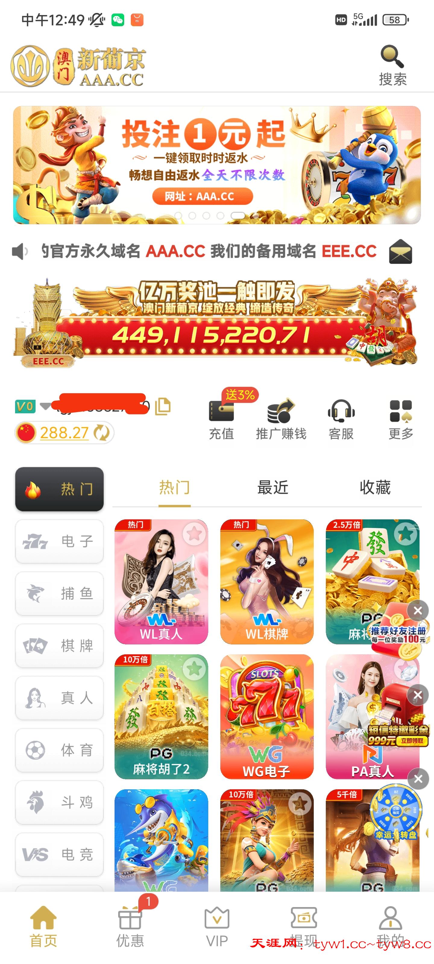 上次注册彩金黑了287