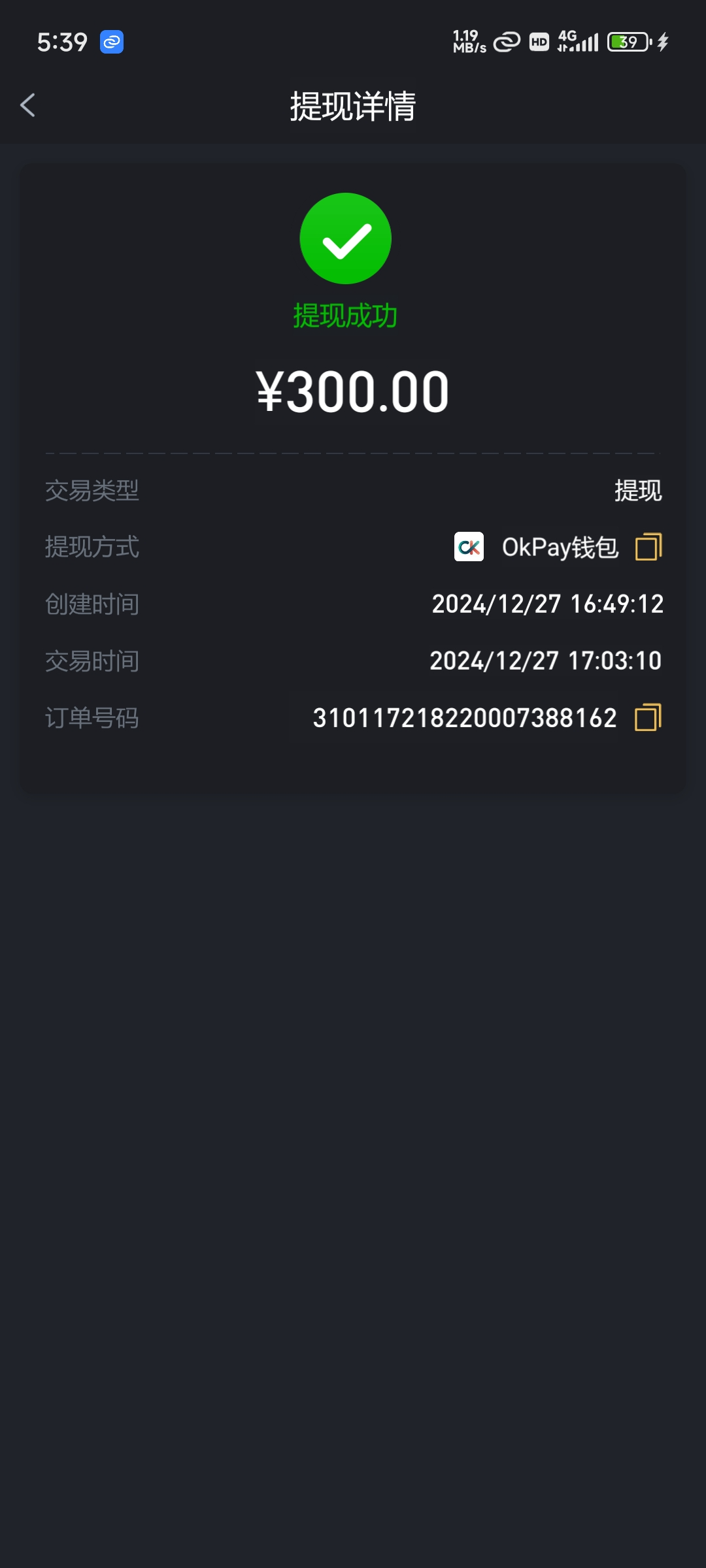 38撸了300到账