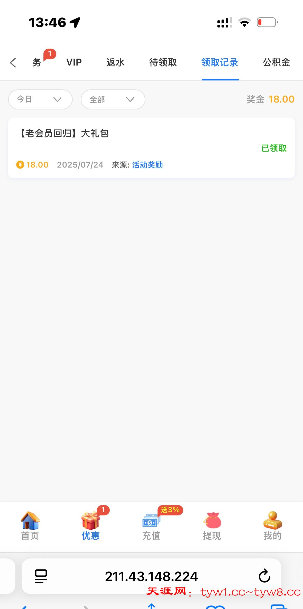 无聊上号看到有个回归彩金