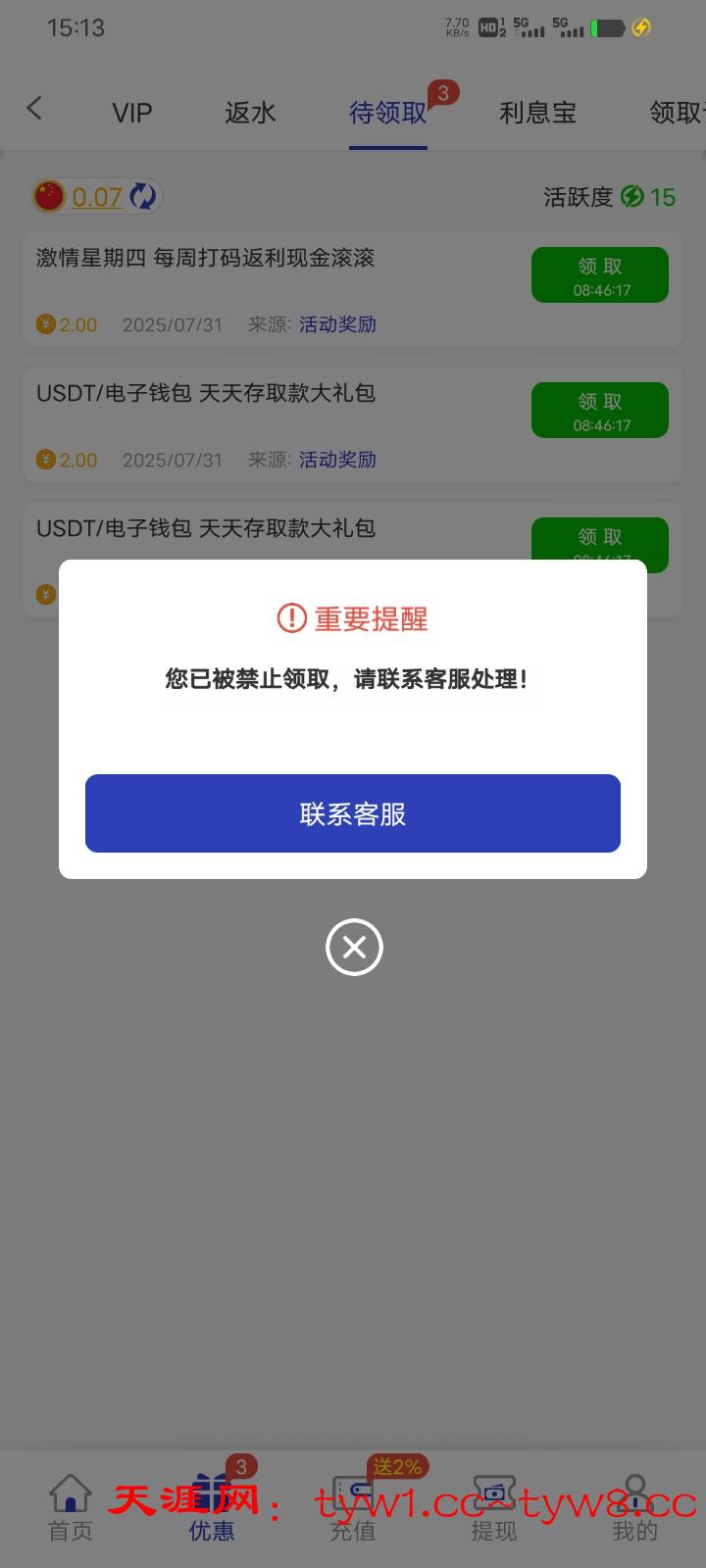 没去的兄弟看见不要去了 昨天充了200玩亏了 今天彩金不给领取