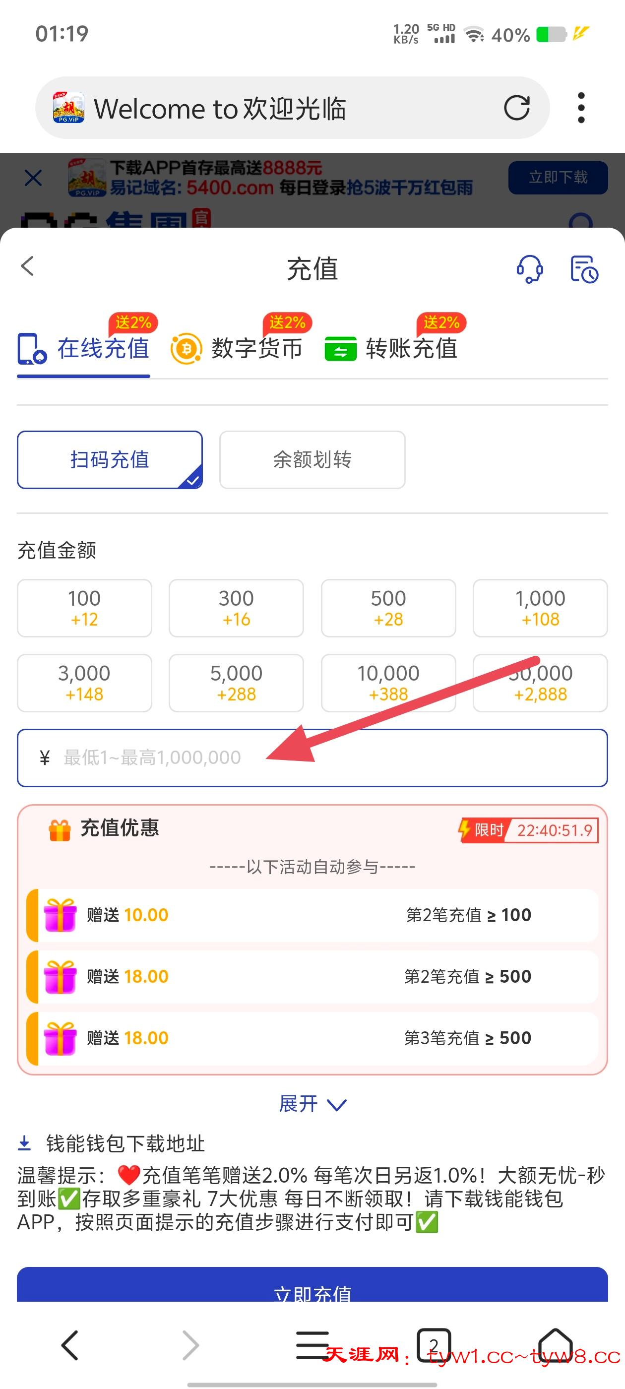 钱包最低充值1 手动输入