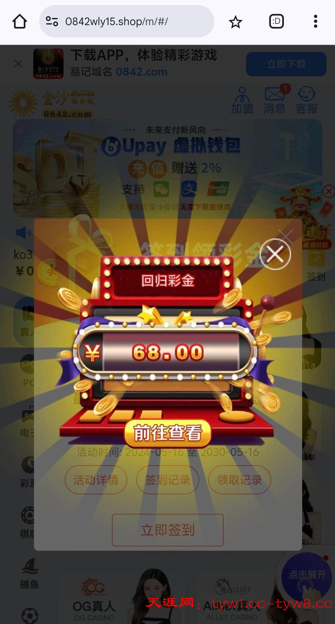 【金沙0842】—✅—小蓝回归彩金68