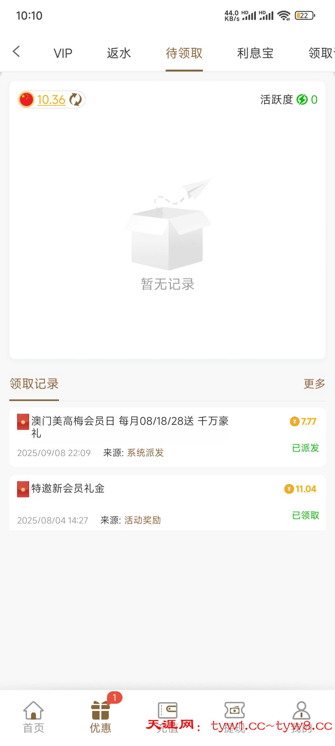 有号充值过一次的上去领一下,具体应该是看VIP等级我没有充过我刚刚充了10块钱,领了7.77,这个看大家自己愿不愿意充
