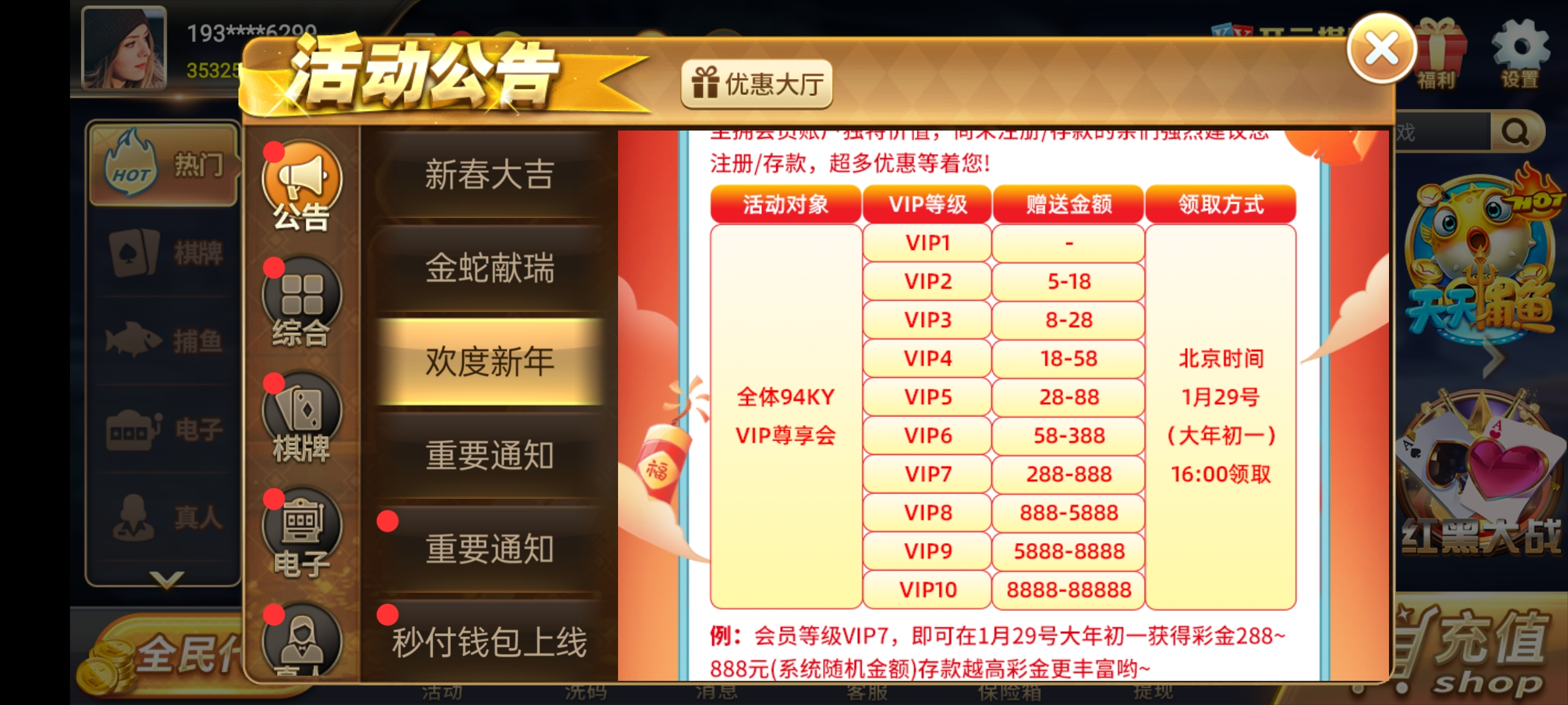 有等级的29号下午登录领彩金