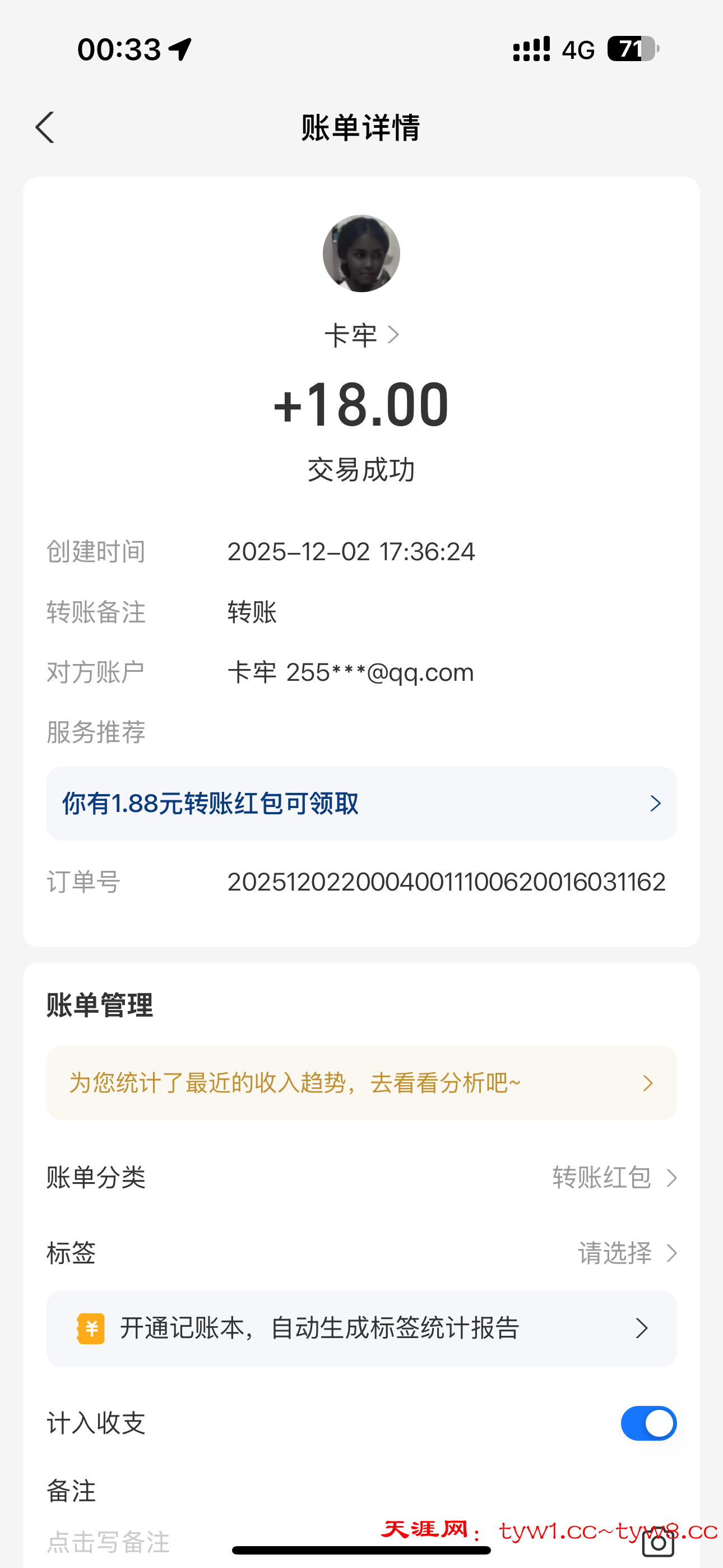 牛子到账