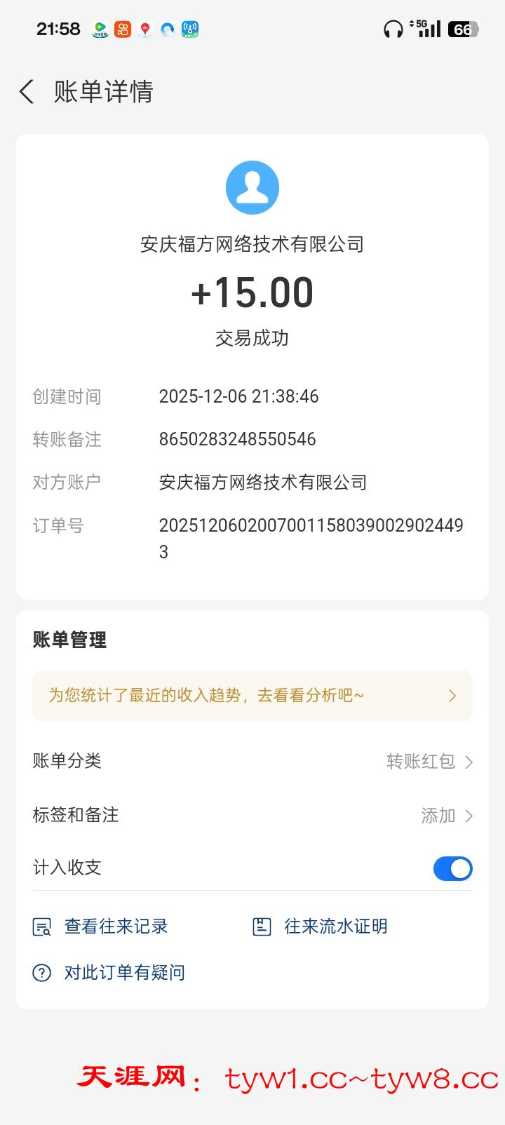 到账15