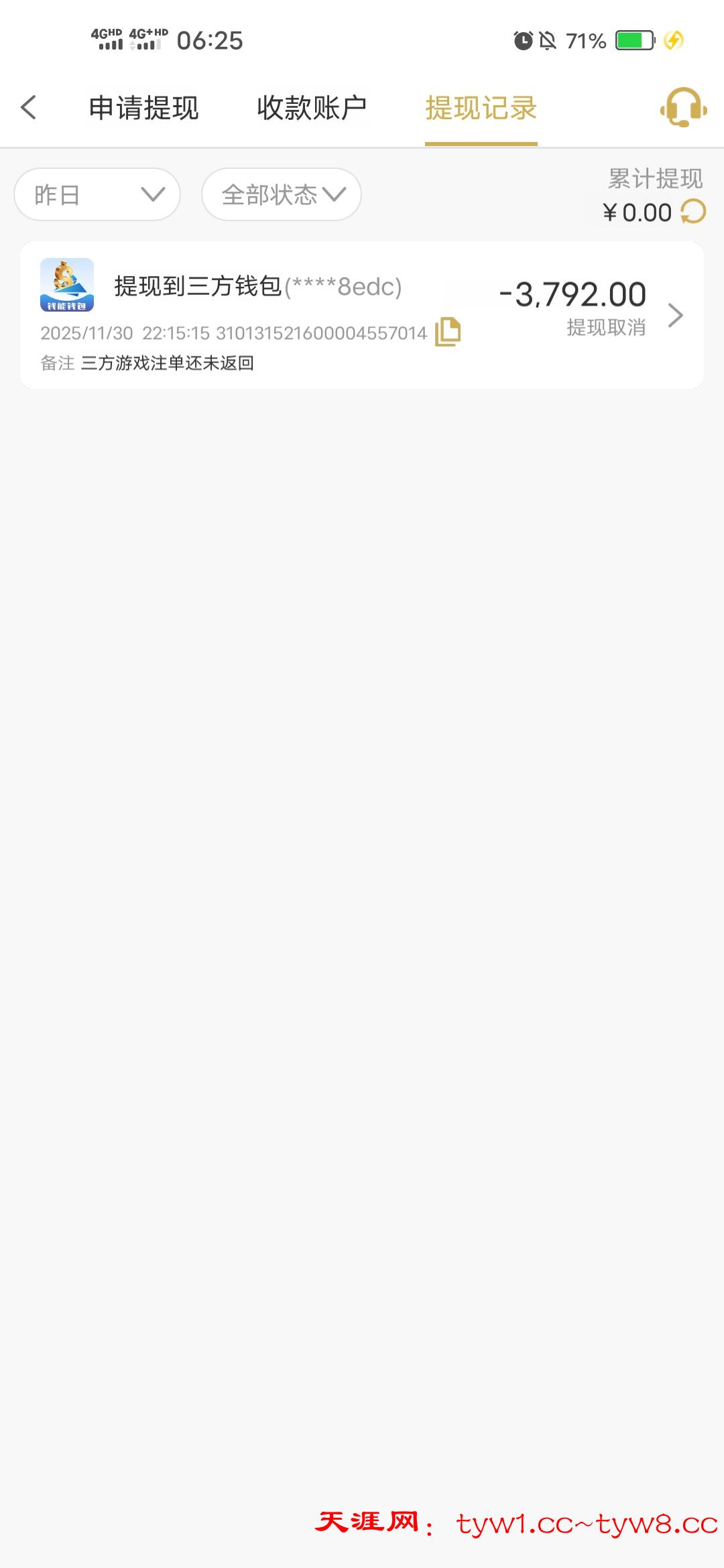 1348死妈黑台 充2500多 玩彩票赢到3800不给提 一问就一直第三方注单未返回 兄弟们还在玩的避雷了 连他妈赢个1000来块都黑的逼东西 充了好几万没想到赢个1000都出不来