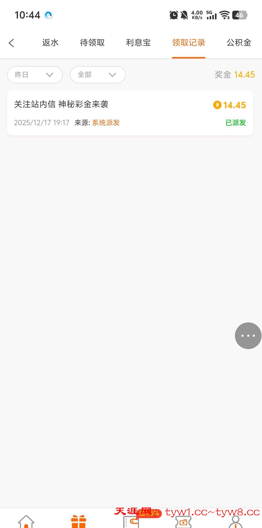 我看记录是昨天派发,今天才上号领取的,以前充过一百几十。
