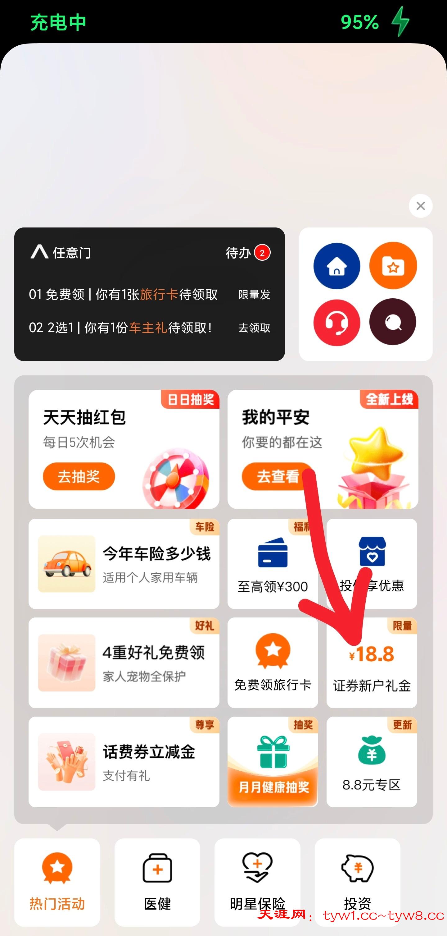 下载平安好车主,如图所示点加号切换旧版,按流程就可以找到新人好礼入口,报名以后去平安证券用报名手机号开户即可,开户很快,真人客服在线验证,回复一个回访短信即可秒开户,然后就能领了