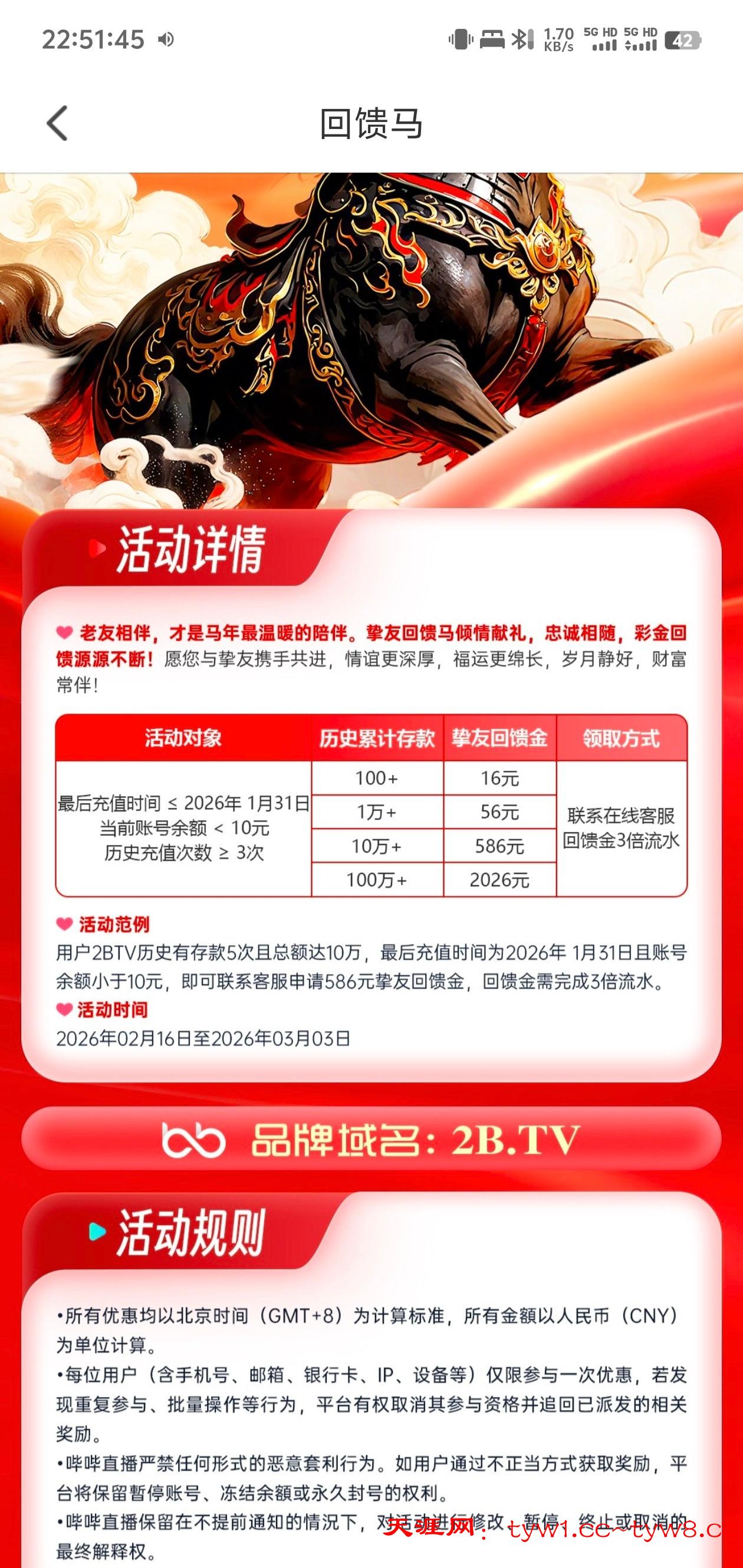 最近有充值符合要求去领,红包好像没有要求,可以先领红包等到账再领回馈马彩金,红包我领了16链接2B.TV