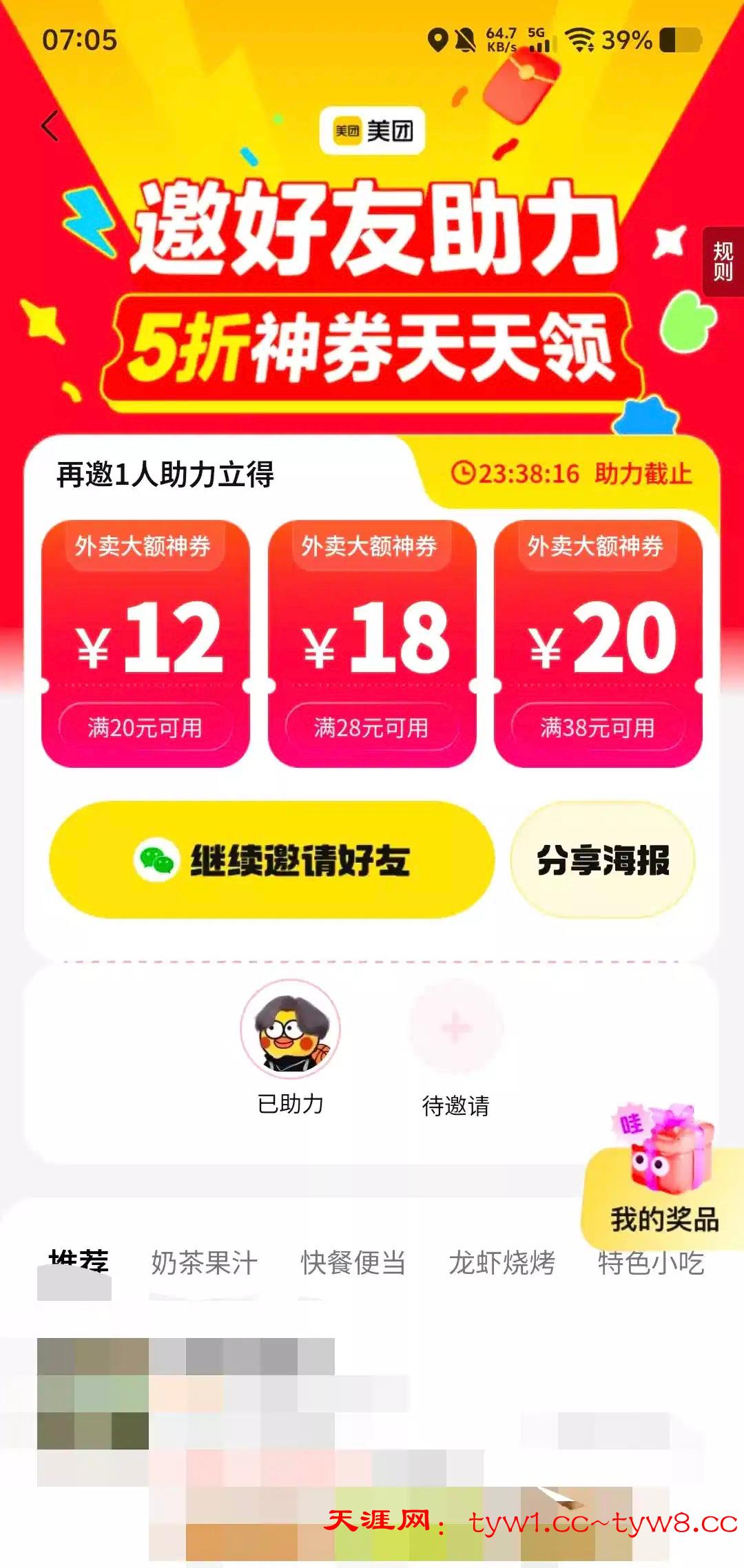 然后好友那边给你发个邀请,你这里点一下就也可以用了,一天一次,有两个微信可以领两次,已经用了一周,很多商家都可以用