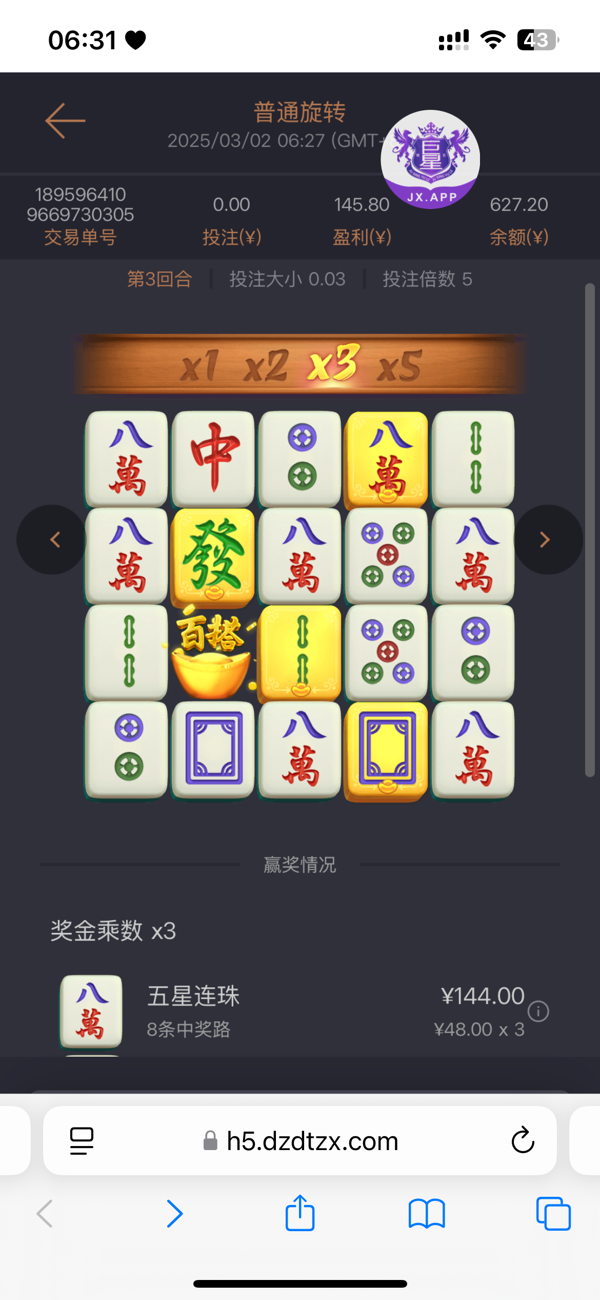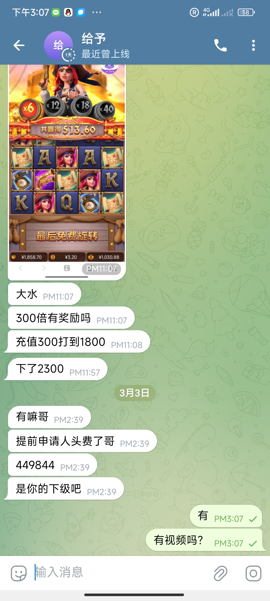 100+100打了300流水