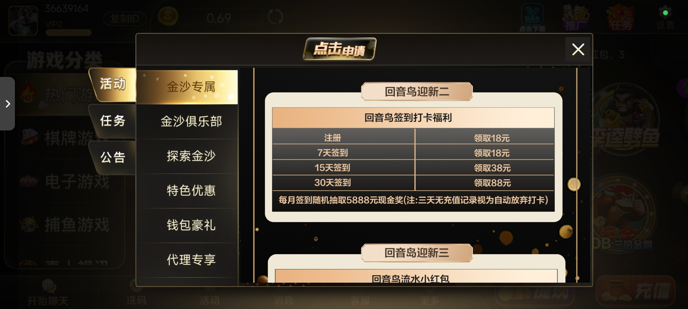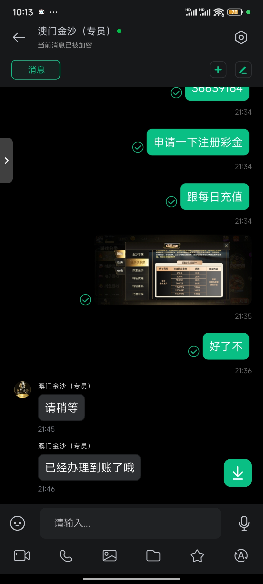 有金沙号的老哥可以去下载注册一个回音鸟,找那个客服申请18注册彩金,没有号的老哥也可以去注册一个金沙号再去找客服要