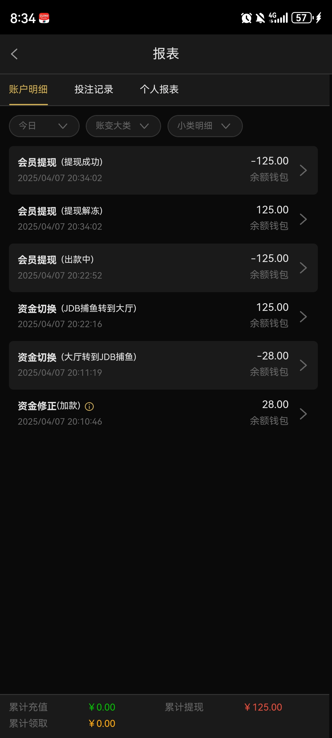 出款情况:自测