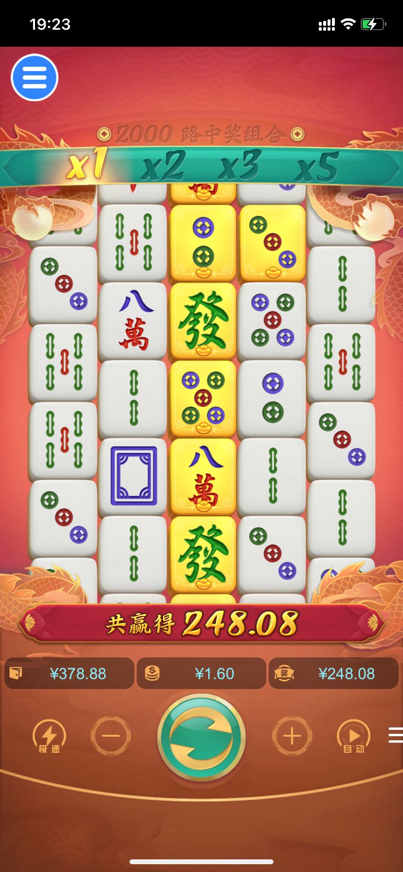 打的麻2 按顺序加注 最低开始 没进胡不换筹码 打到1.6爆了