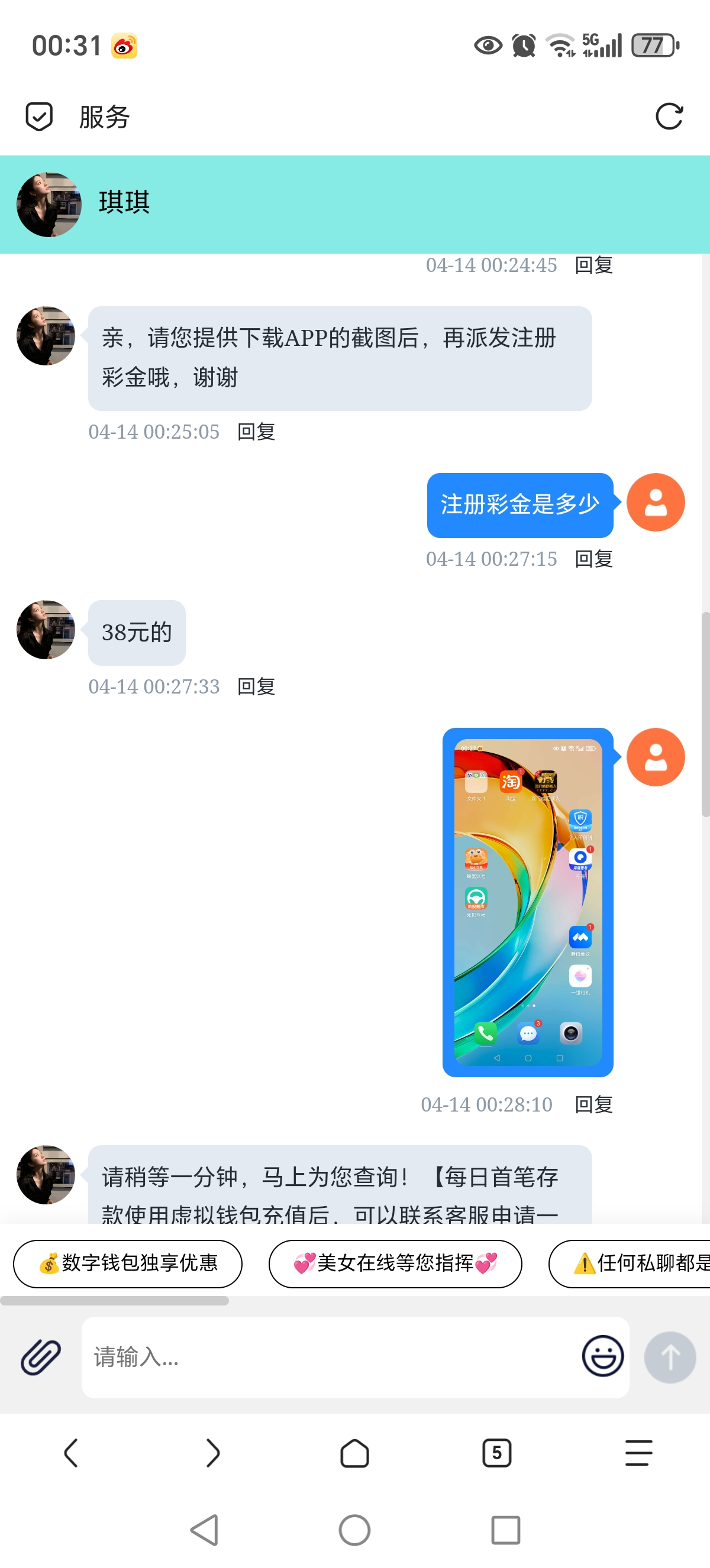 本来想去碰电话彩金 谁知道给我一个下载APP彩金