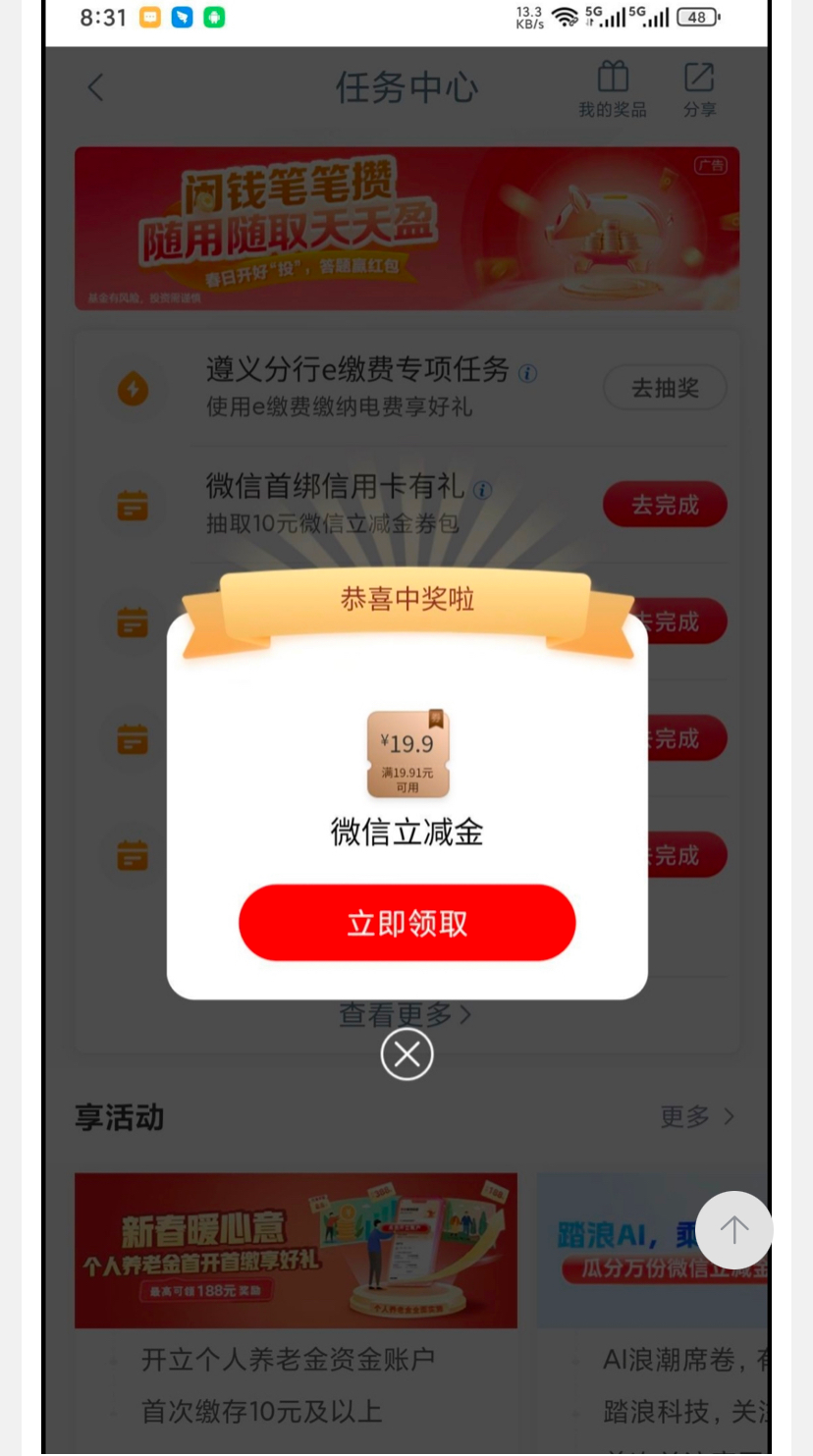 工行飞贵州遵义,任务中心缴费任务中19.99,