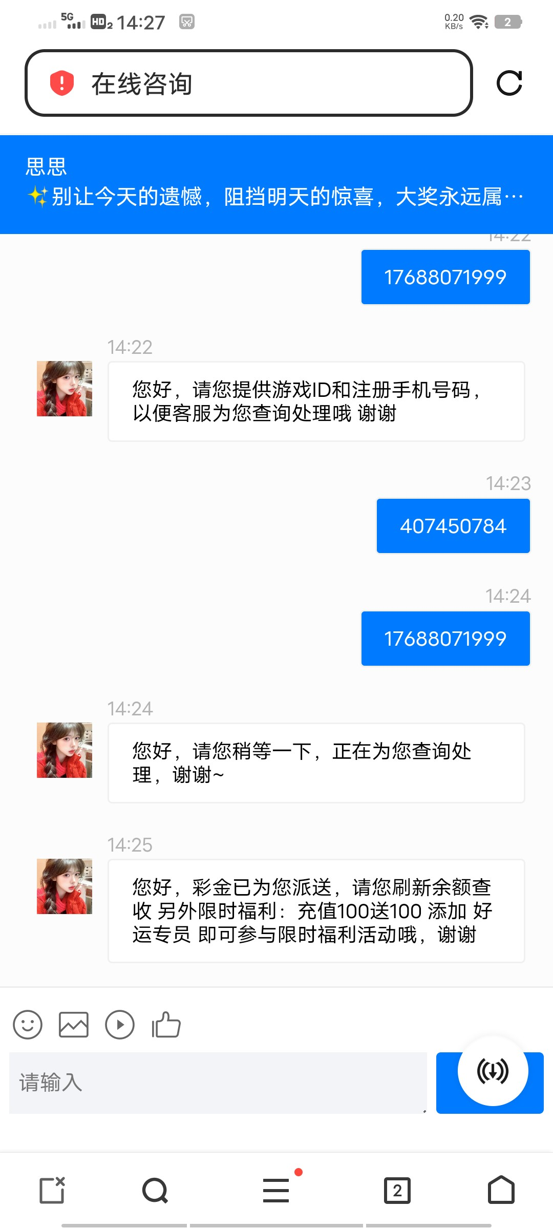 碰瓷客服,给电话和id