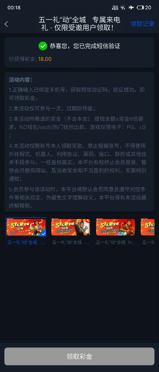 新老用户上号查看,自助验证号码领18.(老台新活动,老号一样可以领)