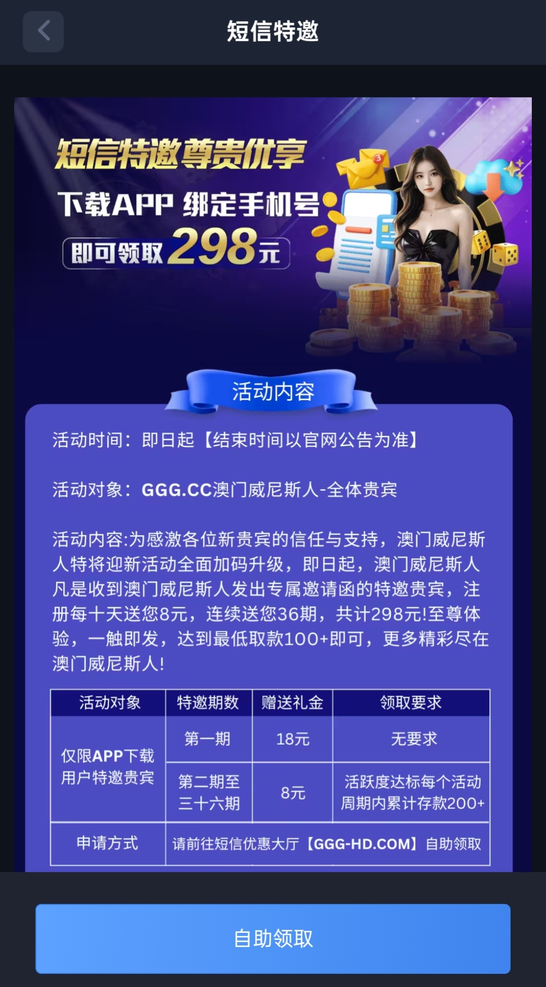 活动页面里面自主申请 过一会儿到账 加上绑卡 绑手机号下载app 我一共领了24 网址 ggg.cc