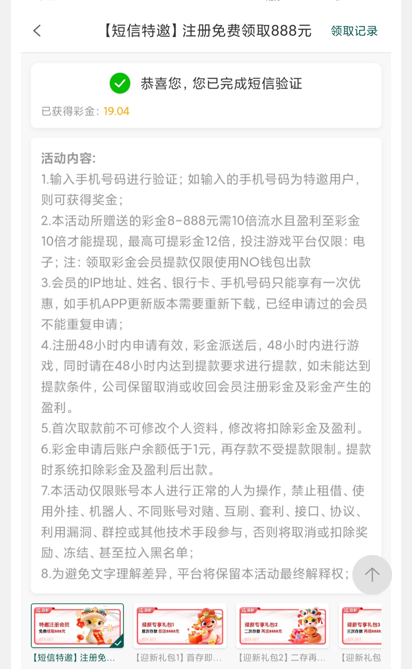短信验证就有彩金,我2个号都申请到了,没打出来,你们可以试试。网站: http://zz.rugth.com 官网034.com