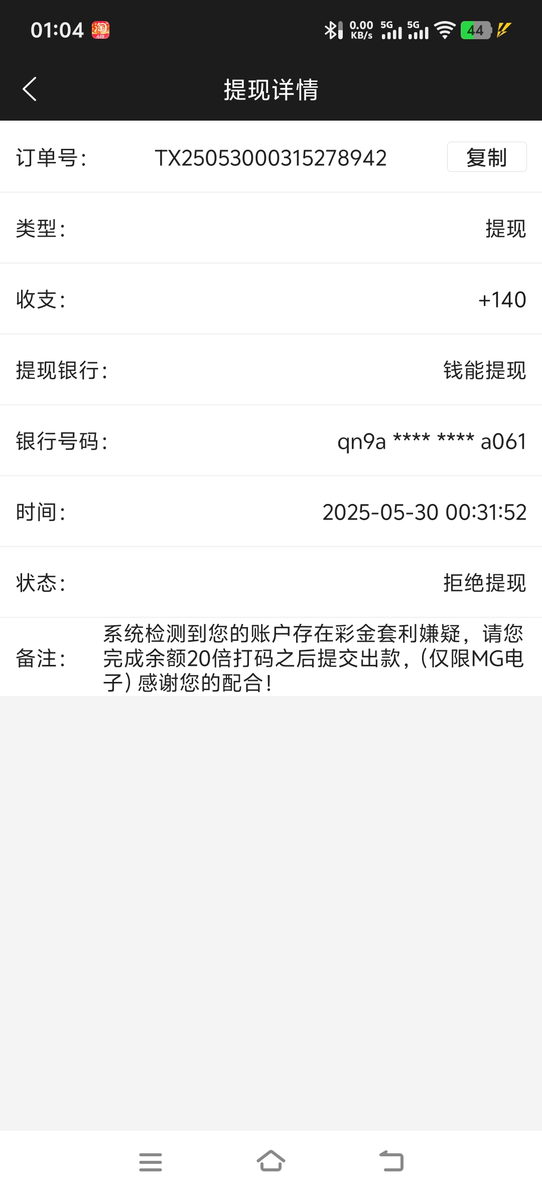 充值100打了160流水提现140说是套利,被罚打提现的20倍流水,狗台子演都不演了