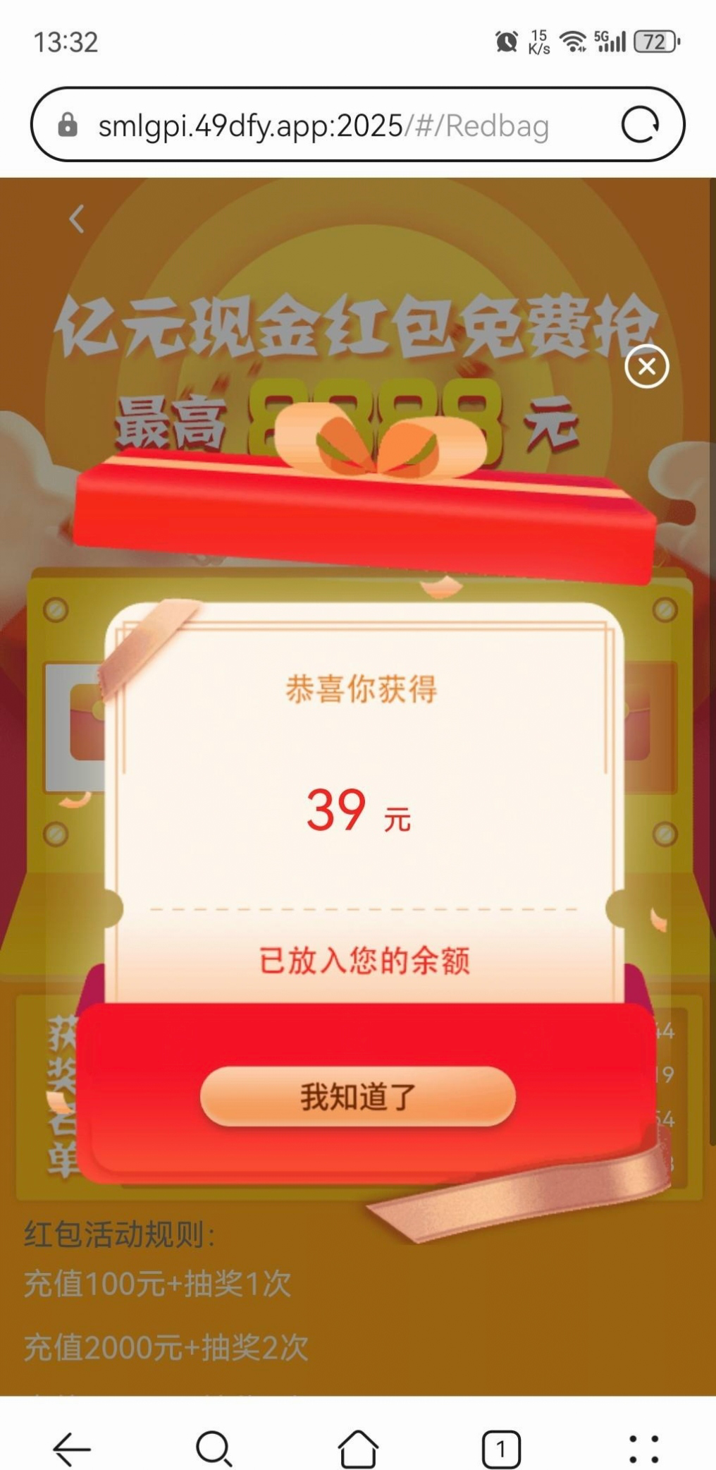 抢的红包你告诉我们登陆进去就跳出来